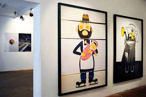 In the large silk screen works from the series “Topmotiviert” by Linus Bill and the publication by the same name showing the work in progress in the artist’s studio the process and the outcome become one and the same thing. The art work gets confused with its representation and vice versa. In Bill’s work, the warm-hearted photography depicting intimate daily life often acts as a starting point for something else. The photographs and the scenes and people shown in them gravitate in and out of the centre of focus, taking turns with aesthetic choices and emphasis on the working process as the main content of the work. Myymälä2 exhibits a selection from the “Topmotiviert” series and the publication will be available for purchase.
